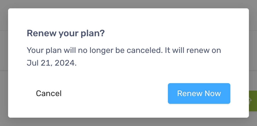 Section titled “Renew your plan”- To cancel your plan, click the 3 dots icon and select “Cancel plan”