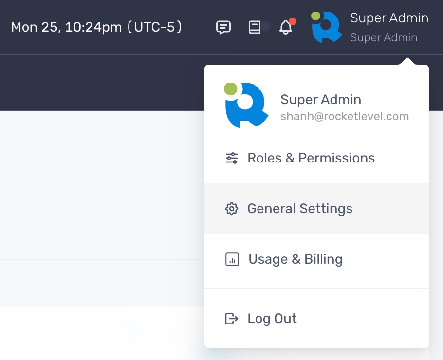 - Navigate to the dropdown menu on the top right corner and select “General Settings”