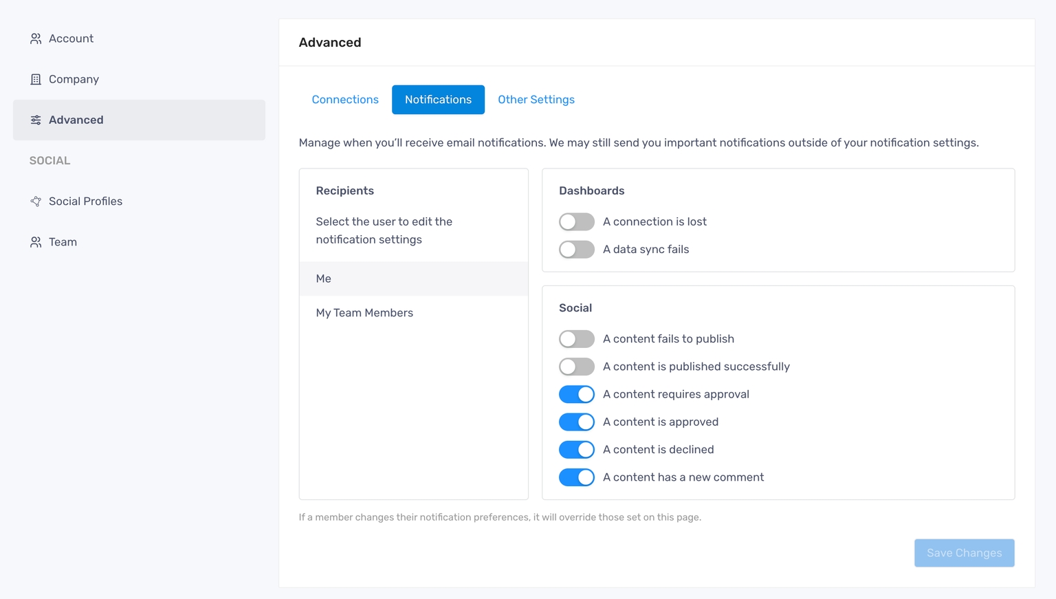 - Adjust the toggles and click “Save Changes” to finish